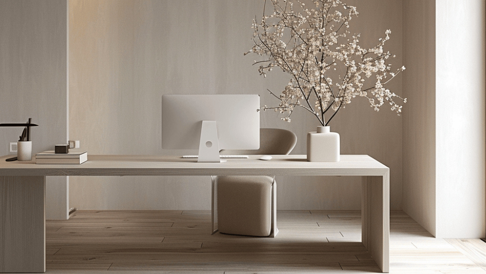The Japandi style favors a neutral color palette, with a mix of warm and cool tones. This includes shades of beige, grey, white, black, and muted pastels.